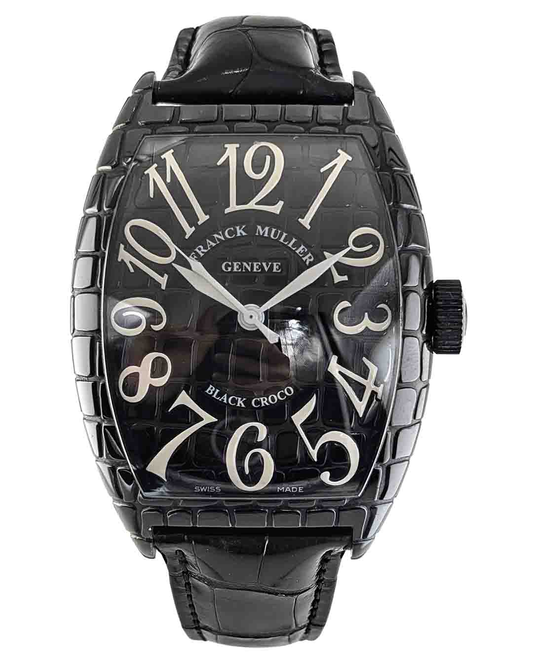 Franck Muller Black Crocoo 43mm SS Black PVD Case Black Number Dial Leather Strap Auto Men Watch