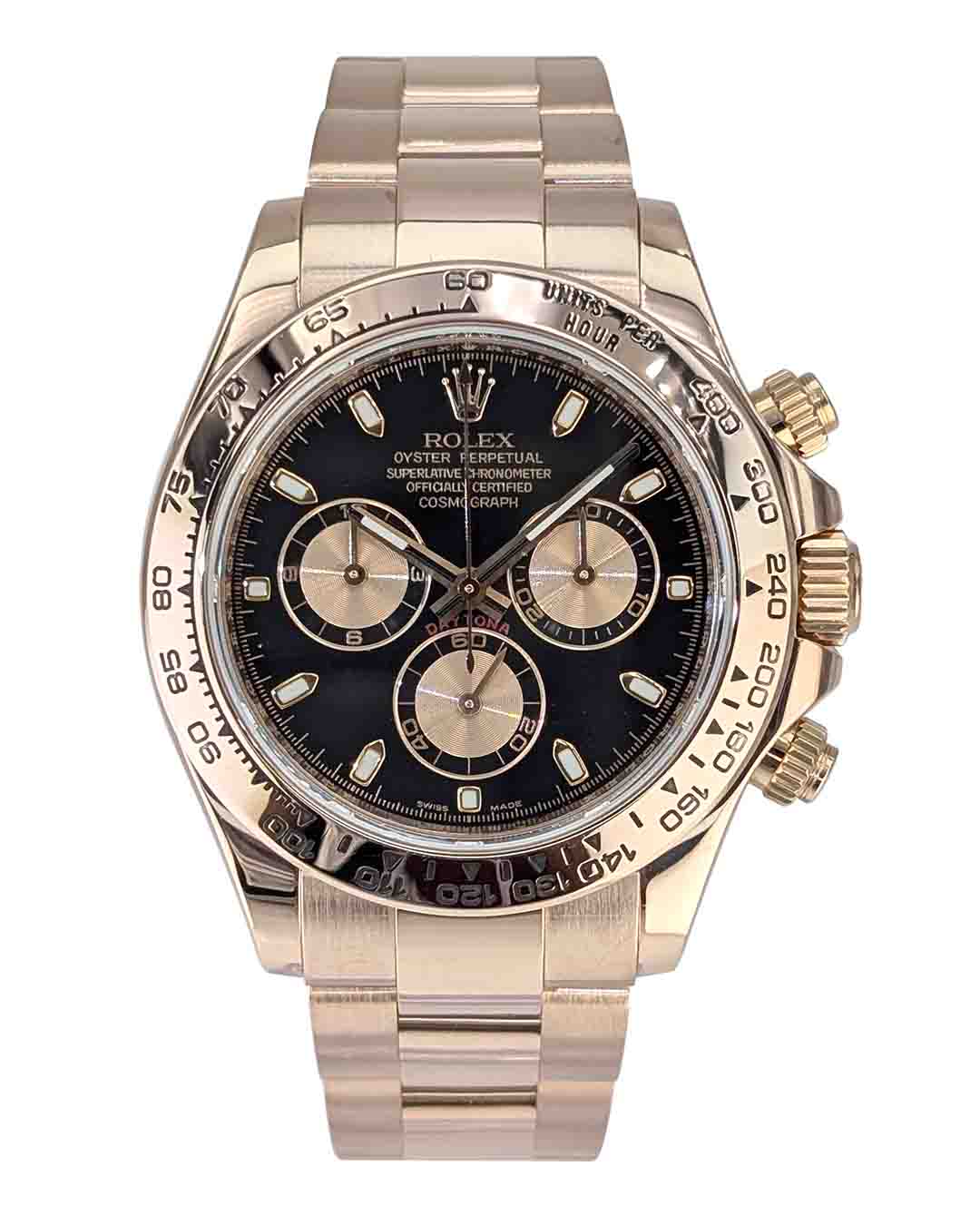 Rolex Daytona Cosmograph 40mm 18K RG Black Dial Bracelet Auto Men Watch