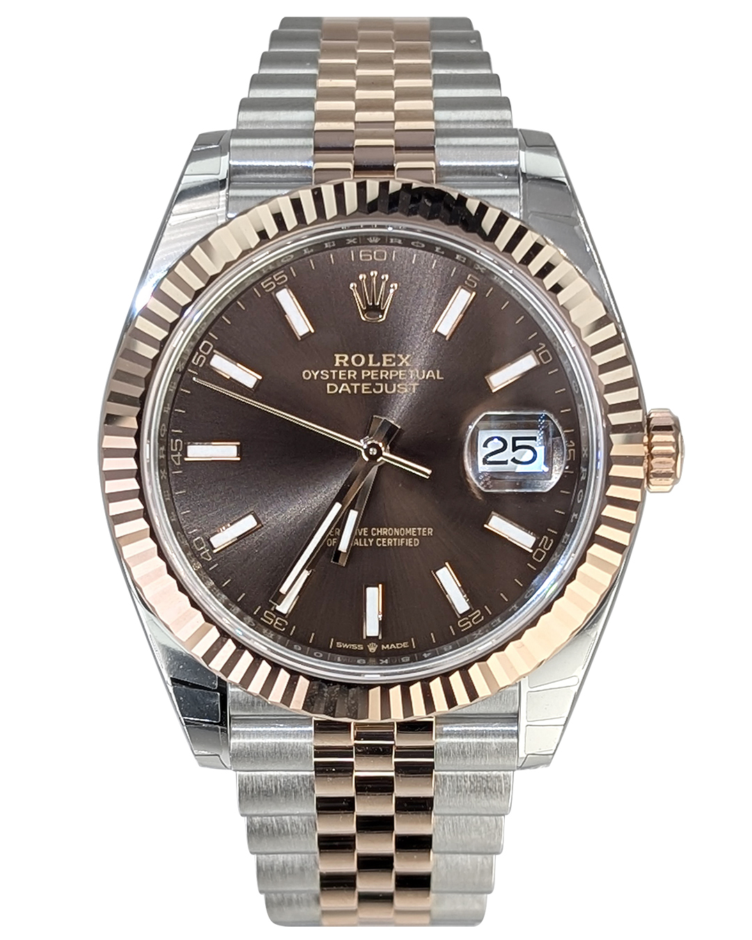 Rolex Datejust II 41mm SS/RG Fluted Bezel Chocolate Index Dial Jubilee Bracelet Auto Men Watch