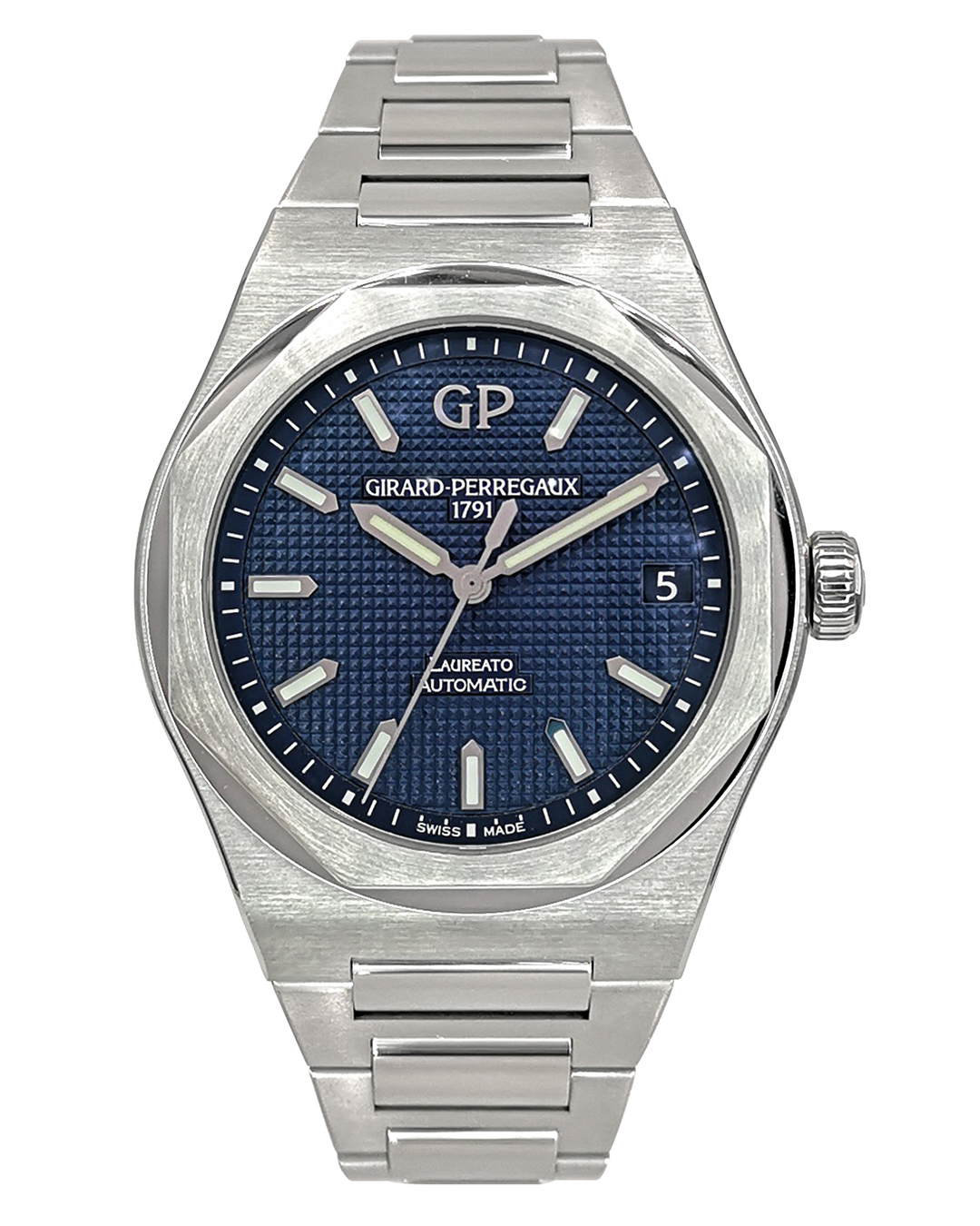 Girard Perregaux Laureato 42mm SS Blue Index Dial Bracelet Auto Men Watch