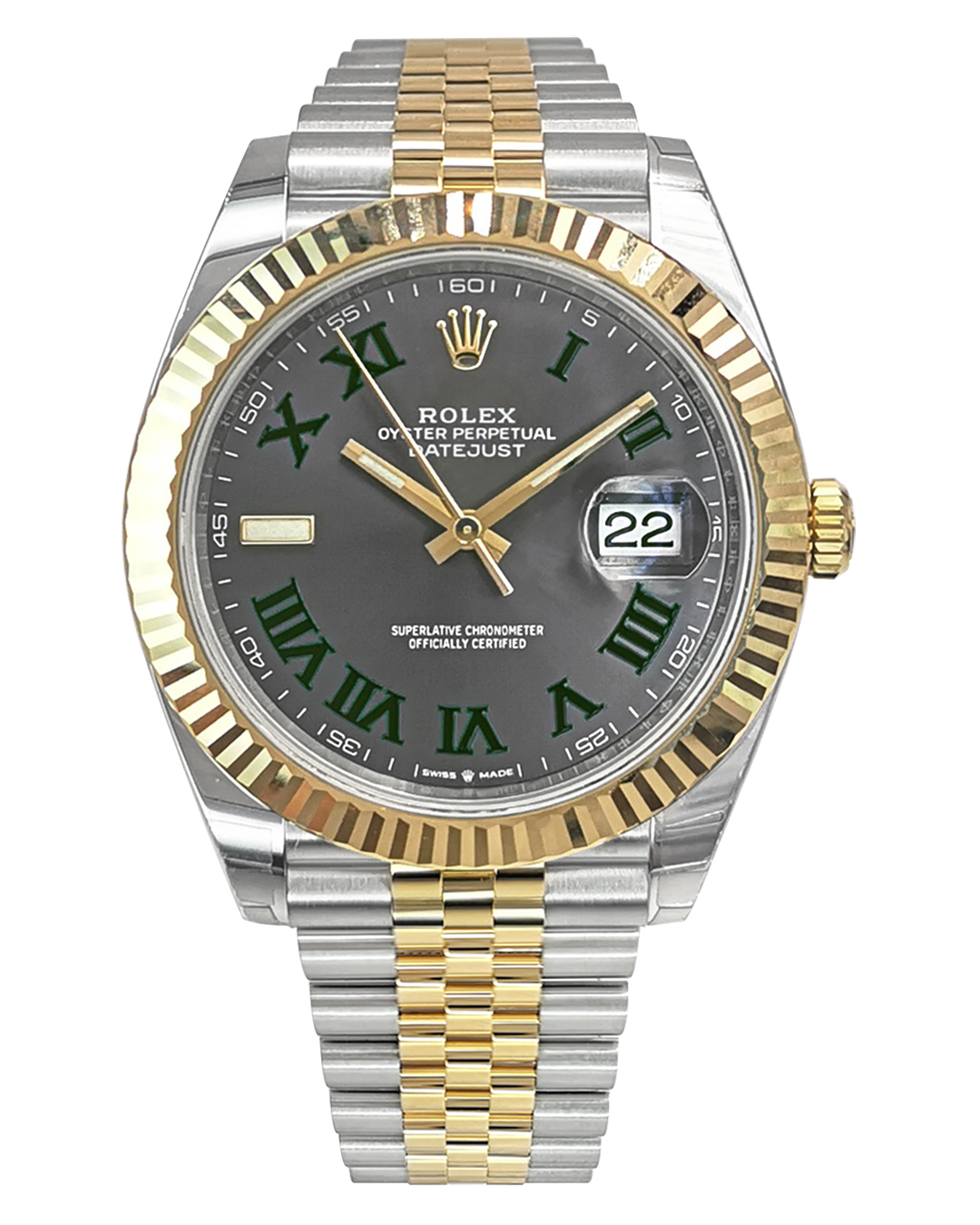 Rolex Datejust II 41mm SS/YG Fluted Bezel Wimbledon Dial Jubilee Bracelet Auto Men Watch