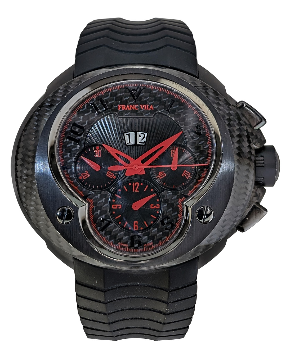 Franc Vila Cobra Carbon Chronograph Grand Date 58mm x 45mm Carbon/DLC Steel Case Black Dial Rubber Strap Auto Men Watch