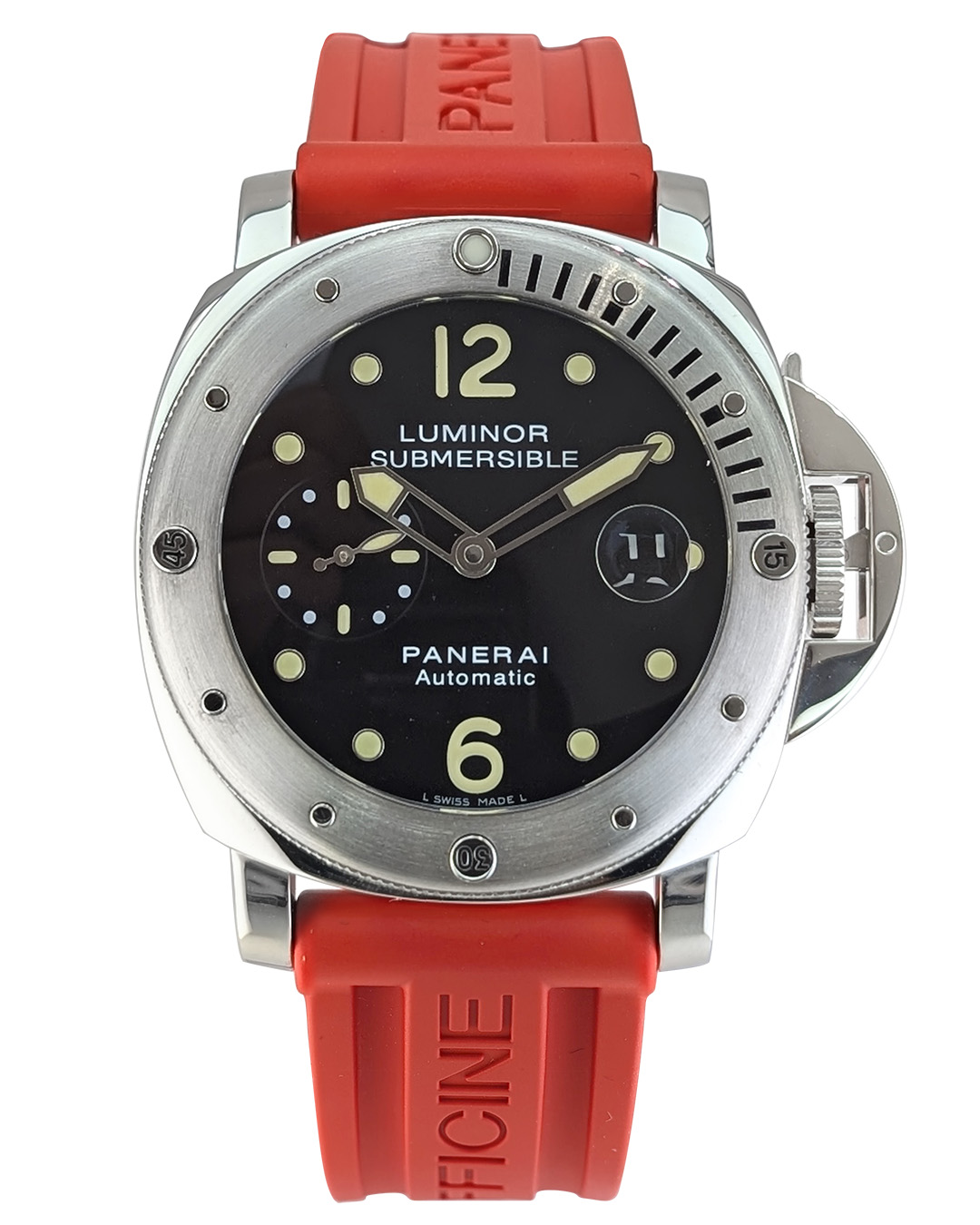 Panerai Luminor Submersible 44mm SS Case Black Dial Red Rubber Strap Auto Men Watch