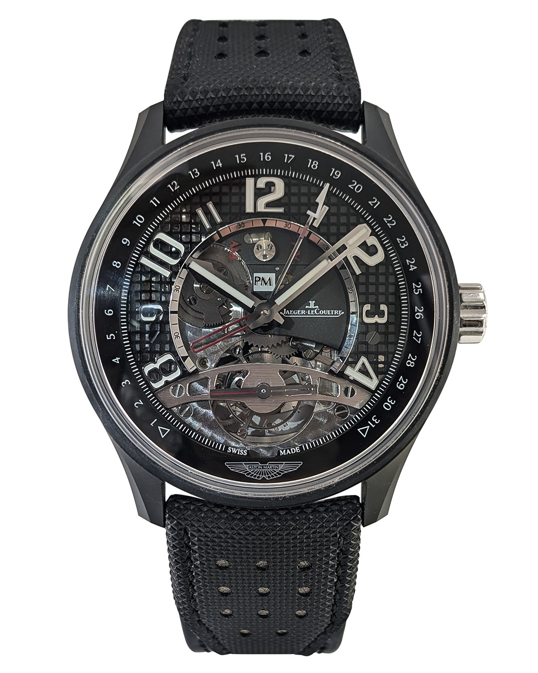 Jaeger-LeCoultre Amvox3 Tourbillon GMT 44mm Ceramic/Platinum Case Black Skeleton Dial Leather Strap Auto Men Watch