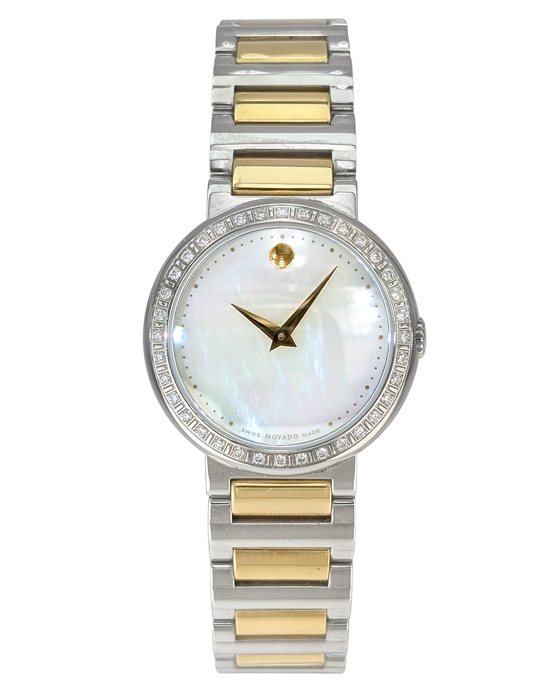 Movado Concerto 30mm SS/YG Diamonds Bezel White MOP Dial Bracelet Quartz Lady Watch